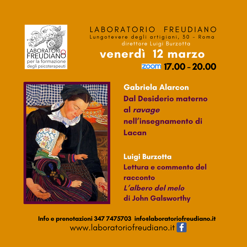 Dal desiderio materno al “ravage” nell’insegnamento di J. Lacan con Gabriela Alarcon | Venerdì 12 Marzo
