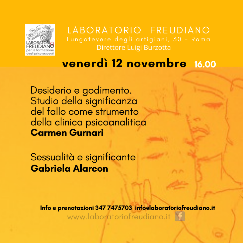 10 Nov Desiderio e godimento. Studio sulla significanza del fallo come strumento della clinica psicoanalitica. – con Carmen Gurnari | Venerdì 12 Novembre”