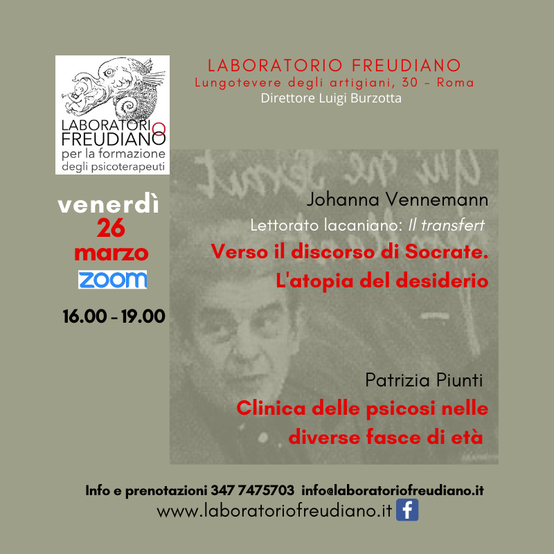 23 Mar Lettorato lacaniano: Il Transfert “Verso il discorso di Socrate. L’atopia del desiderio.” a cura di Johanna Vennemann | Venerdì 26 Marzo