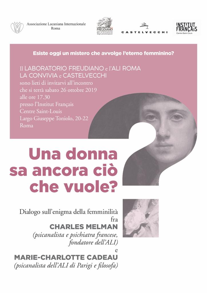 “Una donna sa ancora ciò che vuole?” – 26 ottobre ore 17.30 – Dialogo sull’enigma della femminilità tra Charles Melman e Marie-Charlotte Cadeau