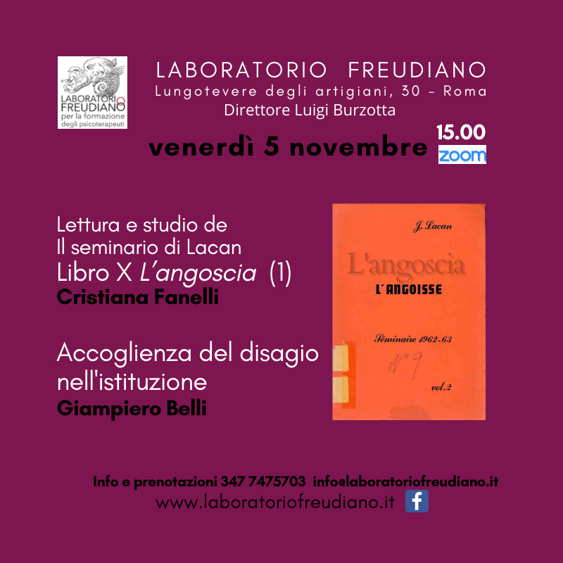 L’angoscia è il libro X del Seminario di Jacques Lacan – con Cristiana Fanelli | Venerdì 5 Novembre”
