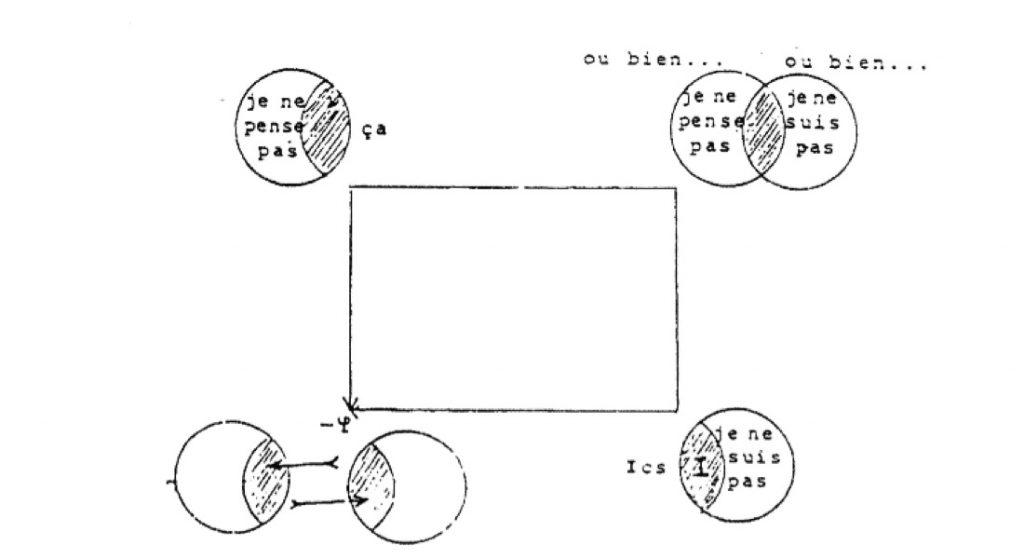 Lacan trova che l’unico modo di situare il “cogito” di Cartesio è quello di collocarlo sotto la rubrica di ciò ch’egli articola come “alienazione”: quella “forma di scelta forzata…verso un’alternativa che si salda con una mancanza essenziale..”.
